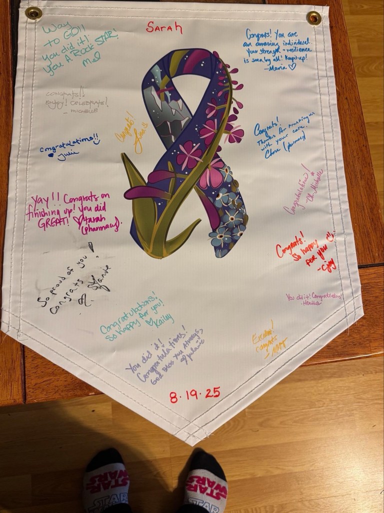 Final chemo infusion completed (Aug 19, 2025)