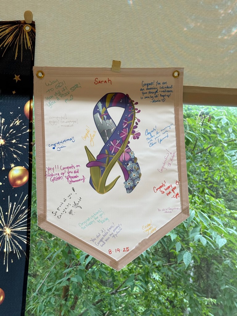 As I step into this next season, I do so with gratitude and hope. The hardest part of treatment is behind me, and the road forward is about healing, rebuilding strength, and learning to live fully again. There will still be scans, appointments, and milestones ahead, but I choose to see them not as fears to face, but as markers of progress and life. I know I am surrounded by love, held up by prayer, and guided by faith. And that gives me courage for whatever comes next.
