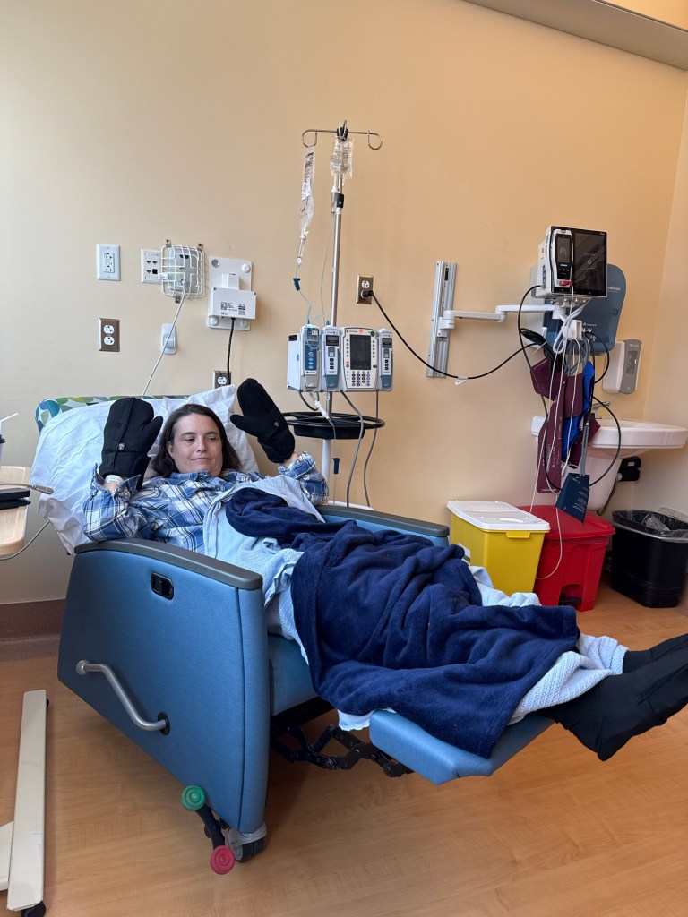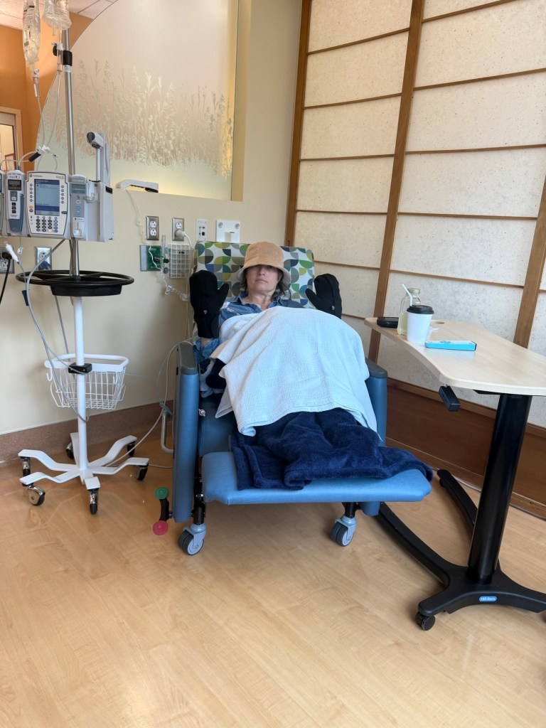 Here’s a photo from my first chemotherapy session. It was pretty intense emotionally, and physically…thankful to have Rob with me. The staff at the Providence infusion center are amazing people who took care of me.